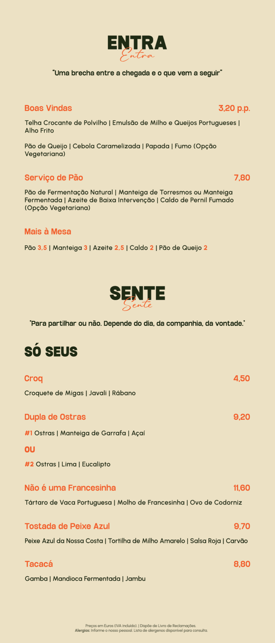 Entradas e Pratos Individuais